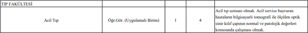 İlan şartında yer alan “Acil servise başvuran hastaların bilgisayarlı tomografi ile ölçülen optik sinir kılıf çapının normal ve patolojik değerleri konusunda çalışması olmak” kriteri oldukça spesifiktir.
